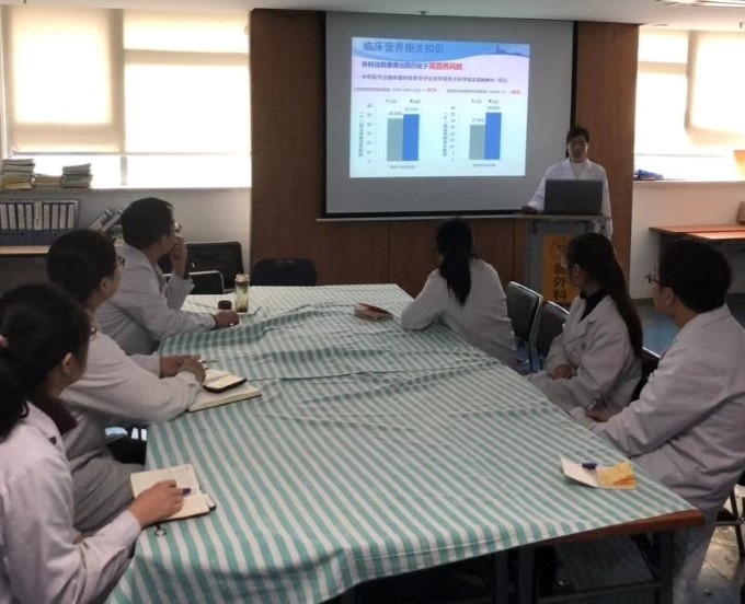 报告结束后,大家就实际工作遇到的问题进行提问,比如术后序贯营养中肠外营养如何逐步减量?不同疾病状态下肠外营养处方中氨基酸量﹑糖脂比的选择和总能量的计算?等相关实际问题,带教药师宁丽娟一一给予详细的解答。最后石斌主任对本次讲座给予高度认可,对临床药师的职责有了更深层的认识,希望今后邀请临床药师多开展此类讲课和交流。